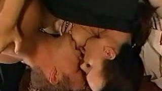 Female Dominance helps two horny crossdressers to gargle big cock and spunk