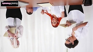 Shemale nurse plows busty MILF in orgy with redhead TS
