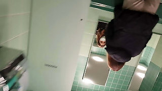In the public restroom at a motorway service station