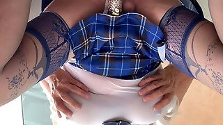 Gorgeous tranny plays with her big jizz-shotgun