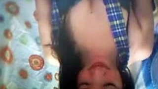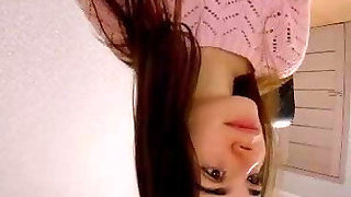 Shy first-timer webcam girl with small tits masturbates