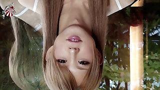 Asian pretty ladyboy masturbating outdoors