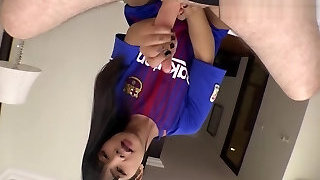 Bareback prostate hj with a ladyboy in soccer uni